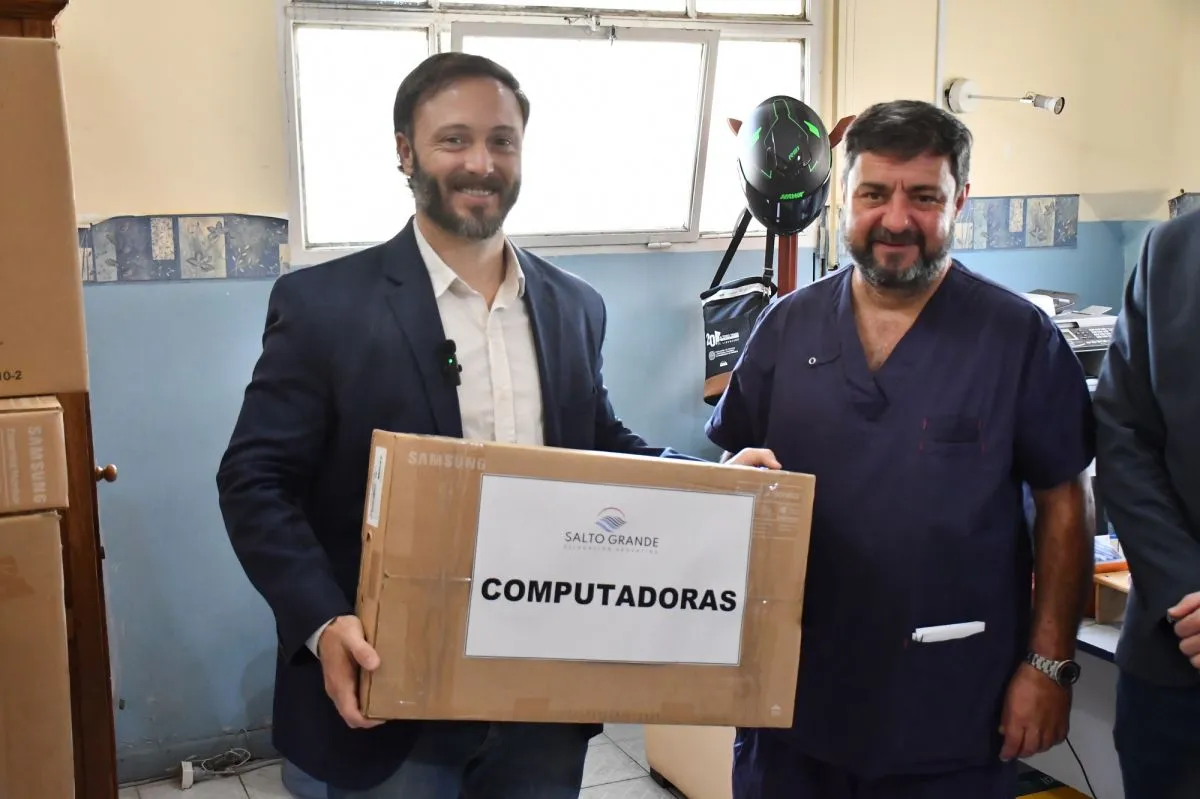 El intendente Francisco Azcué, junto al secretario de Salud, Dr. Diego Sauré, visitaron la Dirección de Especialidades Médicas, uno de los primeros espacios donde comenzó a utilizarse la nueva herramienta. Durante la recorrida destacaron el aporte de la Delegación Argentina de la Comisión Técnica Mixta de Salto Grande y del Banco Hipotecario, entidades que donaron computadoras para equipar los Centros de Salud municipales.