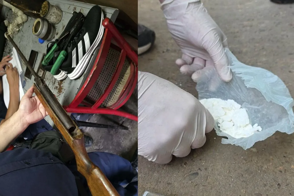 Como resultado de los procedimientos, se logró el secuestro de una gorra con visera color roja marca Lacoste, una remachadora, un par de zapatillas, dos cartuchos calibre .22 y un arma de fuego tipo carabina reformada, con culata de madera.