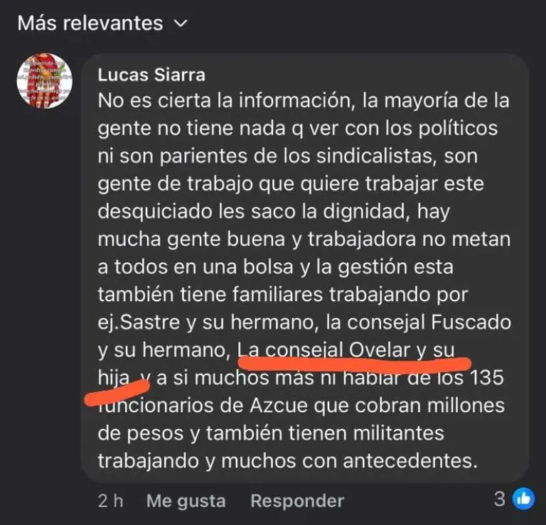 De acuerdo al relato, Siarra aseguró que la concejal Silvina Ovelar se presentó en su lugar de trabajo y, en tono elevado, le habría manifestado: “Si no quitás la publicación que hiciste en Facebook te voy a denunciar y voy a hablar con el Ejecutivo para dejarte sin trabajo”. El empleado indicó además que la situación habría sido escuchada por otros trabajadores presentes en la oficina.