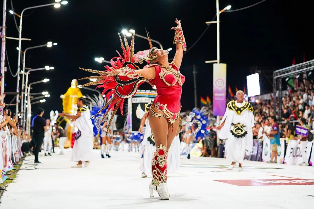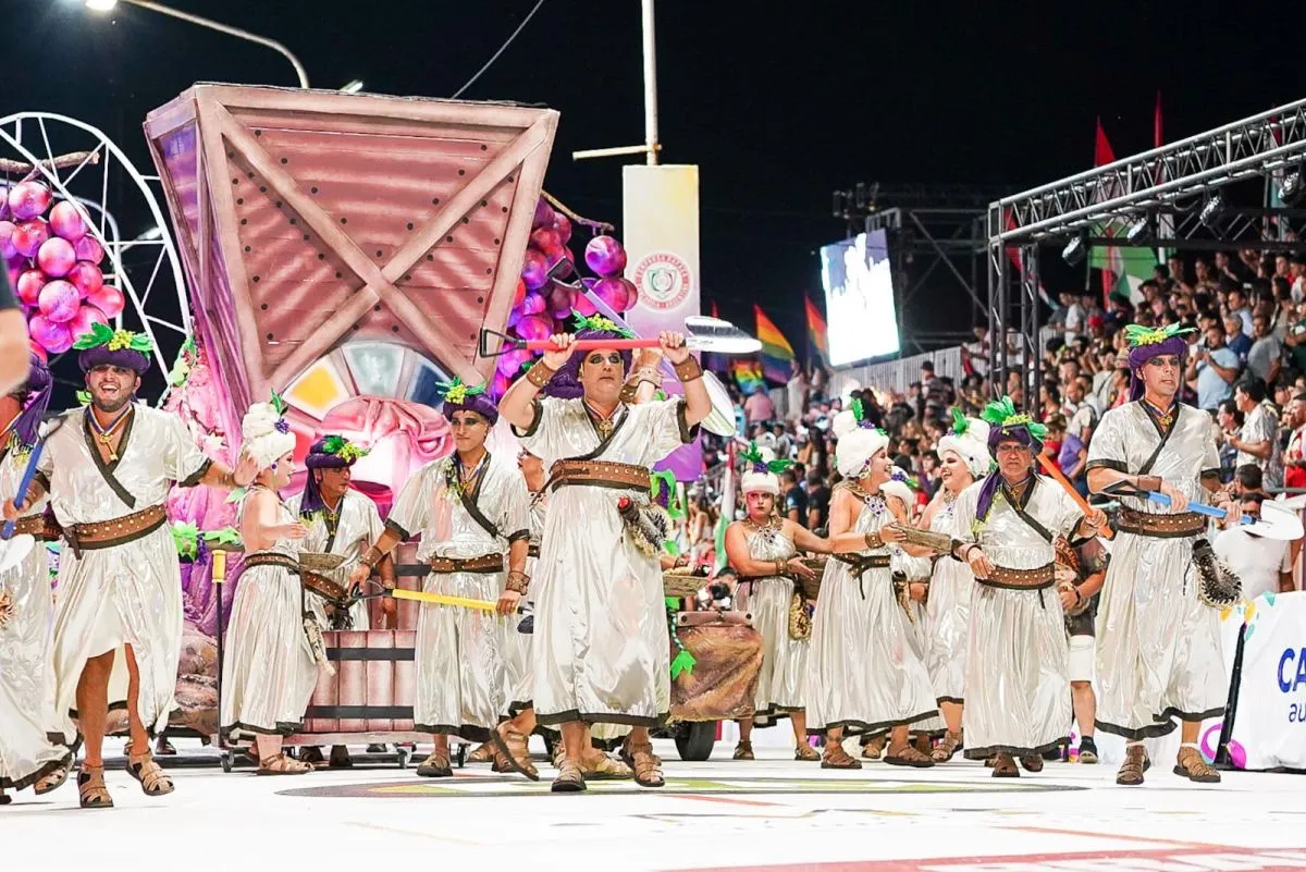 La comparsa fue la primera en pisar la manga en la noche inaugural del Carnaval de Concordia. Con una propuesta artística que recorre el origen del vino y su vínculo con la cultura argentina, Bella Samba desplegó baile, color y un potente cierre de batería que mantuvo al público en vilo.