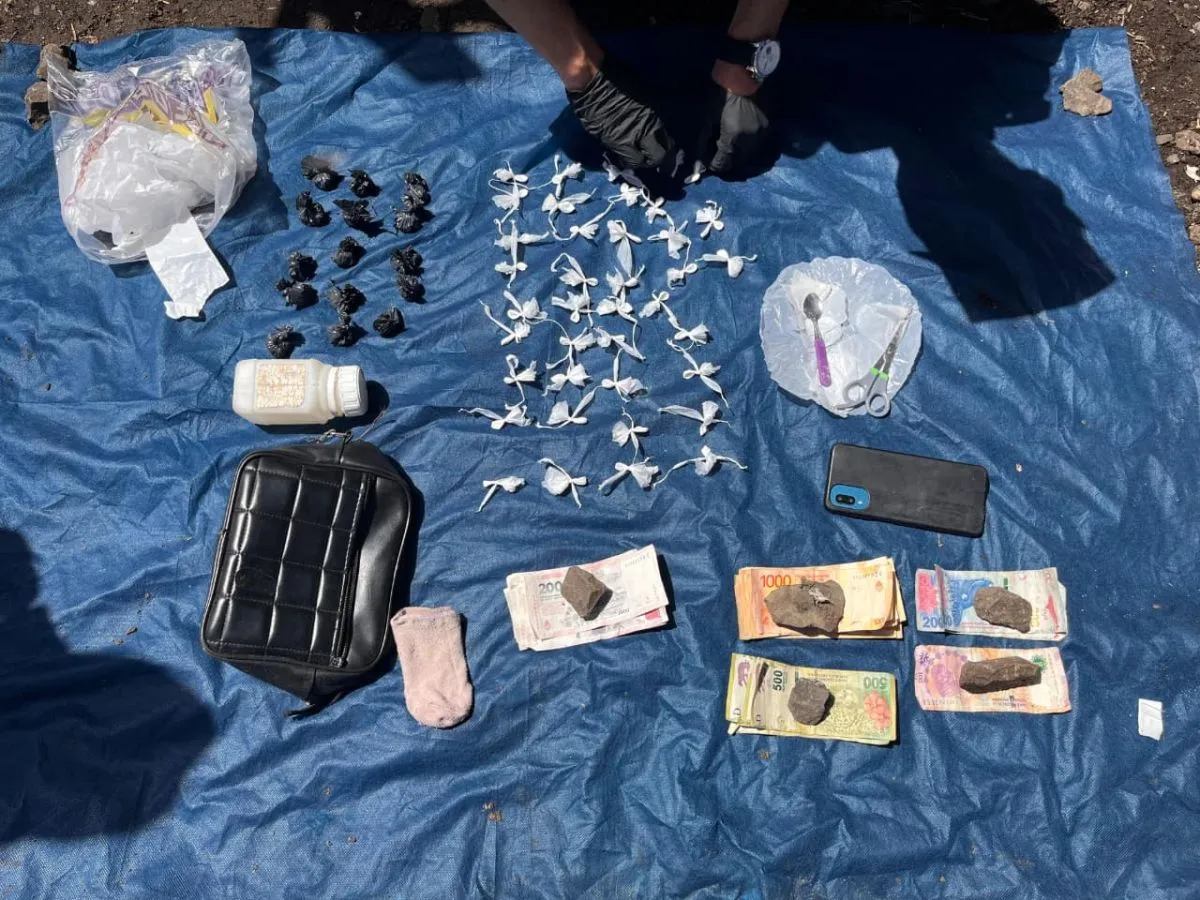 Ante la situación, los uniformados iniciaron un seguimiento y lograron interceptarlos a pocos metros. Durante la fuga, uno de los sospechosos dejó caer la manta, en cuyo interior los agentes encontraron varios envoltorios sospechosos.