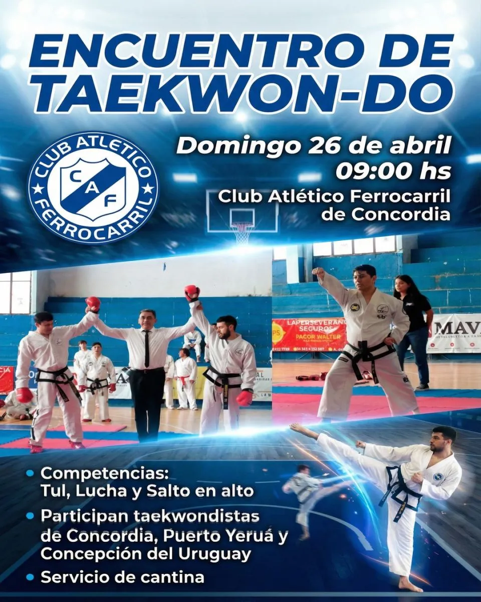La actividad se desarrollará desde las 9:00 horas en el Club Ferro y es organizada por la Escuela de Taekwon-Do Ferroviaria. Participarán delegaciones locales, junto a representantes de Puerto Yeruá y Concepción del Uruguay.